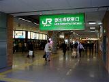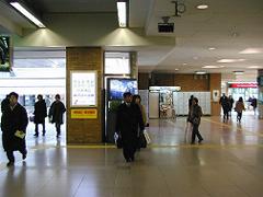 JR山手線 恵比寿駅「東口」改札を出ます。 ホームの案内板では"ガーデンプレイス"方面を目指してください。新宿方面からは車両前寄り3〜4両目に乗ると便利、ホームから昇りの階段/エスカレーターをのぼると、そこが 「東口」 です。 地下鉄日比谷線をご利用の方は、駅ビルに入る大きなエスカレーター (昇り2列、下り1列) を昇って 「アトレ(駅ビル)」 をまっすぐ抜けて東口へお回りください。 写真は改札を出て右方向に向かって数メートル歩いた風景 (写真の右手視野外には券売機が並ぶ)。通路が2つに分かれますので、左手の外に出る階段に向かいます。 * 右手の動く歩道 "スカイウォーク" には入らないようご注意ください。 |