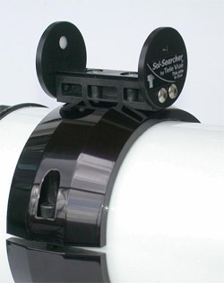 また、互換オプションの「ダブテールブロック (ソルサーチャーに装着時に必要)」、「クイックリリースファインダーブラケット」を併用することで、ソルサーチャーと、ビクセン互換ファインダーを簡単に付け替えることができます。 |