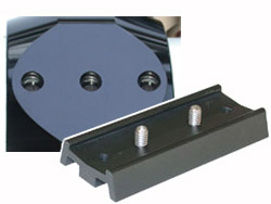 標準付属の鏡筒バンド下部の底面には1/4"ネジタップが両端35mm間隔で3ヶ所設けられています。カメラ三脚にはそのままで、オプションの「LSダブテールプレート ⇒ 注文」を介してGP互換のアリミゾにそのまま装着できます。