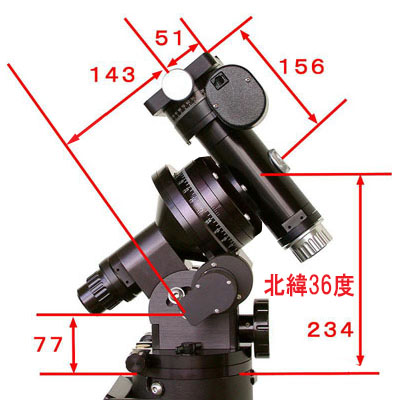 | 極軸高度調整 | タンジェント アーム方式 - 高度調整範囲 0〜68°、高度目盛 2°単位 |
