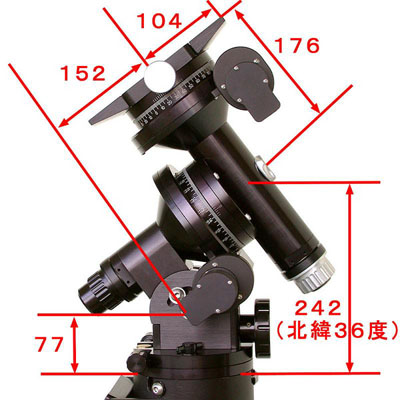 | 極軸高度調整 | タンジェント アーム方式 - 高度調整範囲 0〜64°、高度目盛 2°単位 |