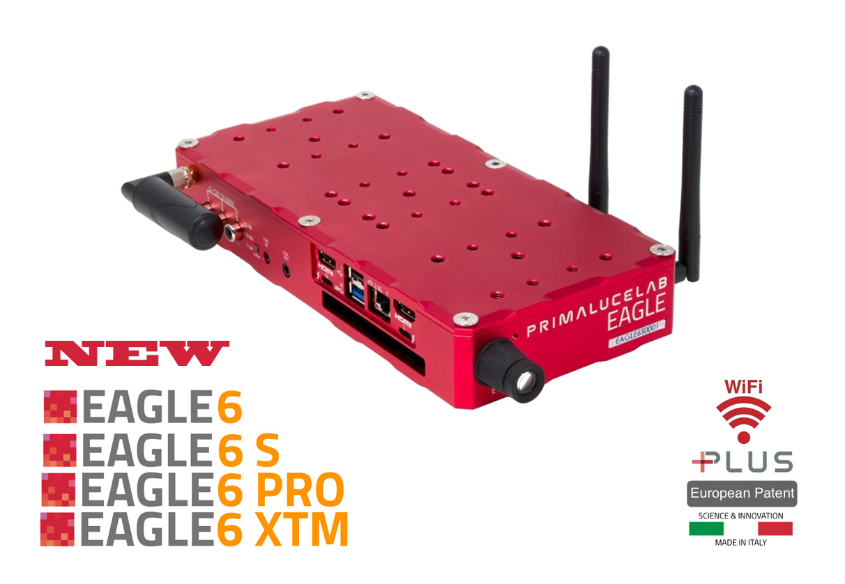 EAGLE6 の新機能 EAGLE コンピュータの電源がオフになっている状態でも、EAGLEのイーサネットポートに接続されたケーブルを介して電源投入やモニタリングを可能にする LOM (Light-Out Management)、マウントやドームなどを容易にリモートコントロールできる CTRL-IN、CTRL-OUT ポートでの Observatory Actions、より高速で、応答速度の早く、ワイヤレス干渉の少ない WiFi 6E (802.11ax) などが EAGLE6 の新しい機能です。 もちろん、EAGLE6 は従来の GPS センサー、EYE スカイブライトネスモニター、傾斜計 (Inclinometr)、Motion ディテクター、各 LED を消灯する DARK モード、PrimaLuceLab デバイスの接続をワイヤレスに置き換える GOST モードなど、先進の機能も継承します。