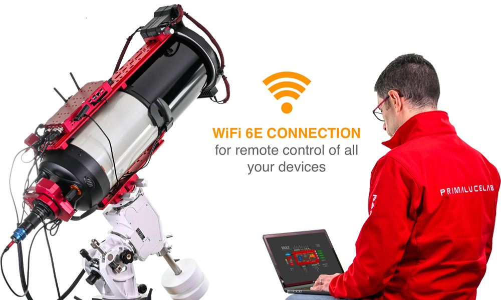 昨今の撮影システムは数多くのデバイスで構成され、システムは数多くのケーブルで囲まれます。EAGLE の電源統合システムと USB ポートだけでもケーブルマネージメントをかなり改善できますが、GHOST モードを活用することで、プリマルーチェラボ社製 SESTO SENSO 2、ESATTO、ARCO、GIOTTO、ALTO などのデバイスを、個別のドライバやソフトを使うことなく、WiFi 接続で制御できます。GHOST モードでは、EAGLE Manager X を介していずれの PLL デバイスにもワイヤレスで接続し、COM デバイスが新規構築されることで、従来の USB ケーブルから開放されたうえ、使い慣れた天体撮影プログラムや ASCOM プラットフォームを従来どおり使えます。